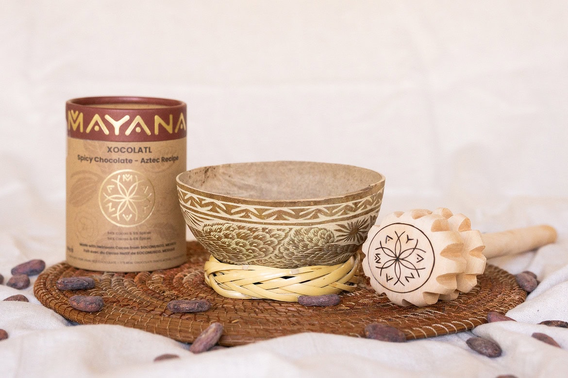 This beautiful set includes traditional accessories to prepare and enjoy a decadent cup of chocolate, the way the Maya and the Aztecs did.